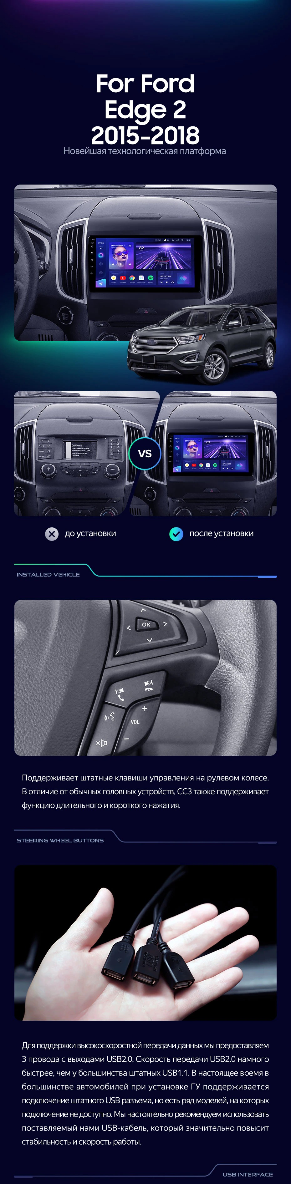 Штатная магнитола Teyes CC3 4/32 Ford Edge 2 (2015-2018) F1 - купить всего за 32 830 руб. в интернет-магазине в Калининграде Teyes.com.ru. ✓ Самый лучший выбор мультимедиа ✓ Лучшая замена штатному ГУ ✓ Тел. +7 (800) 775-31-74