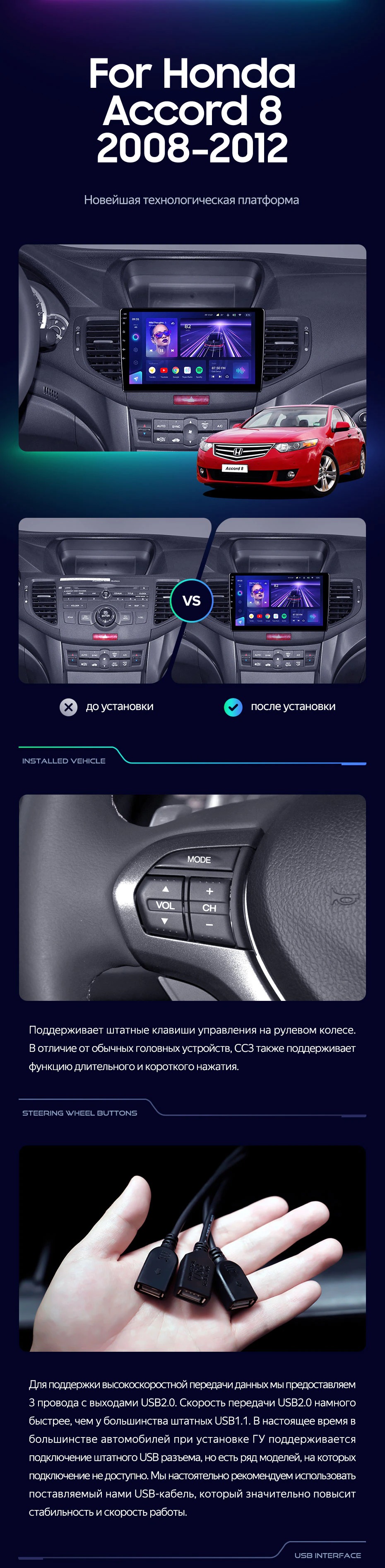 Штатная магнитола Teyes CC3 4/32 Honda Accord 8 (2008-2012) - купить всего за 33 730 руб. в интернет-магазине в Калининграде Teyes.com.ru. ✓ Самый лучший выбор мультимедиа ✓ Лучшая замена штатному ГУ ✓ Тел. +7 (800) 775-31-74