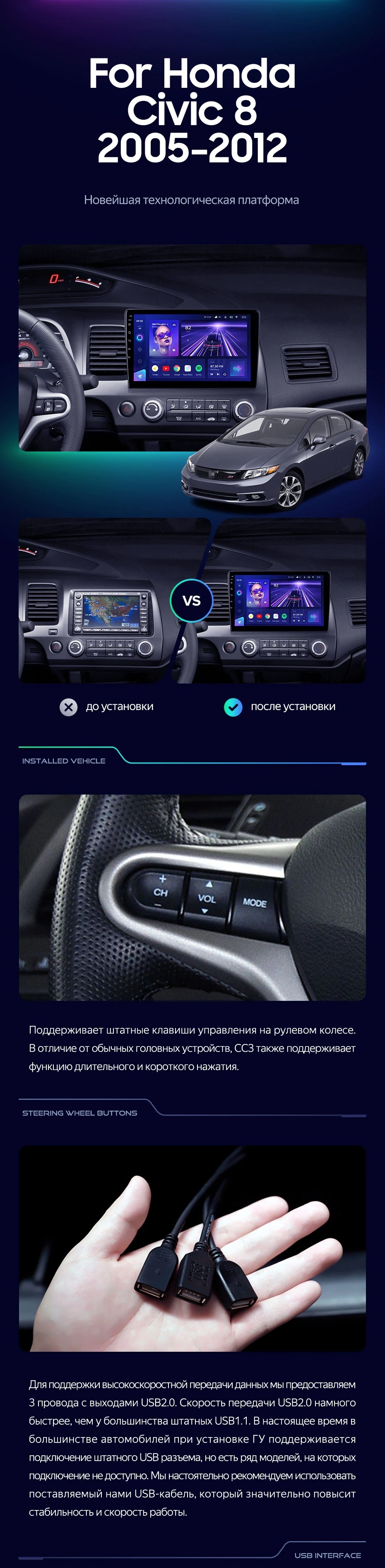 Штатная магнитола Teyes CC3 4/32 Honda Civic Hatchback (2006-2012) - купить всего за 35 970 руб. в интернет-магазине в Калининграде Teyes.com.ru. ✓ Самый лучший выбор мультимедиа ✓ Лучшая замена штатному ГУ ✓ Тел. +7 (800) 775-31-74