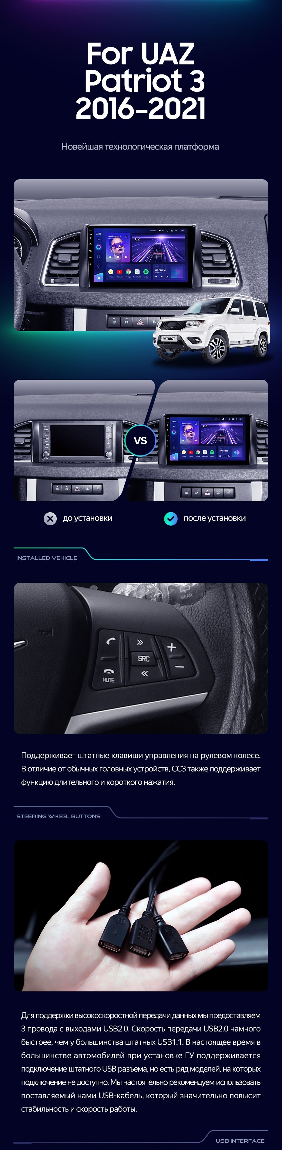 Штатная магнитола Teyes CC3 4/32 UAZ Patriot 3 (2016-2021) F1 - купить всего за 32 270 руб. в интернет-магазине в Калининграде Teyes.com.ru. ✓ Самый лучший выбор мультимедиа ✓ Лучшая замена штатному ГУ ✓ Тел. +7 (800) 775-31-74