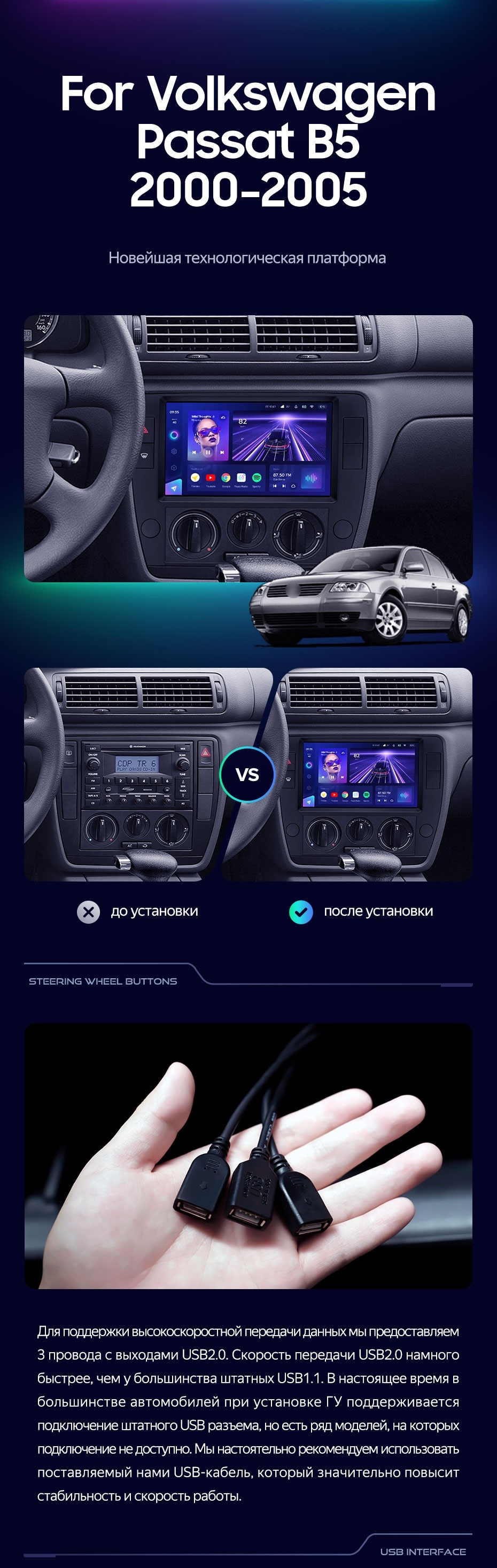 Штатная магнитола Teyes CC3 4/32 Volkswagen Passat B5 (2000-2005) - купить всего за 33 490 руб. в интернет-магазине в Калининграде Teyes.com.ru. ✓ Самый лучший выбор мультимедиа ✓ Лучшая замена штатному ГУ ✓ Тел. +7 (800) 775-31-74