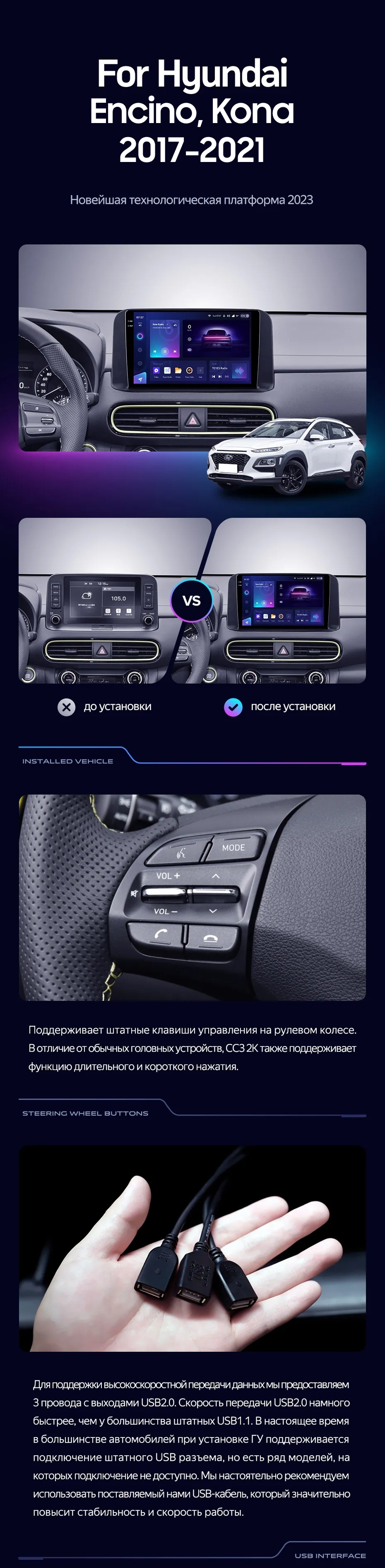 Штатная магнитола Teyes CC3 4/32 Hyundai Kona (2017-2021) - купить всего за 33 800 руб. в интернет-магазине в Калининграде Teyes.com.ru. ✓ Самый лучший выбор мультимедиа ✓ Лучшая замена штатному ГУ ✓ Тел. +7 (800) 775-31-74