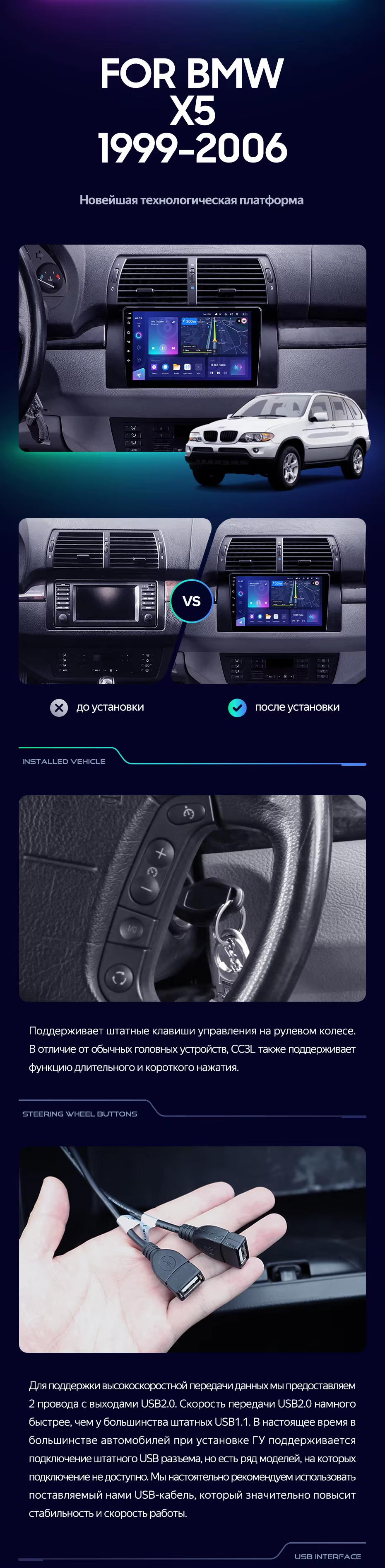Штатная магнитола Teyes CC3L 4/32 BMW X5 E39 E53 (1999-2006) - купить всего за 29 500 руб. в интернет-магазине в Калининграде Teyes.com.ru. ✓ Самый лучший выбор мультимедиа ✓ Лучшая замена штатному ГУ ✓ Тел. +7 (800) 775-31-74