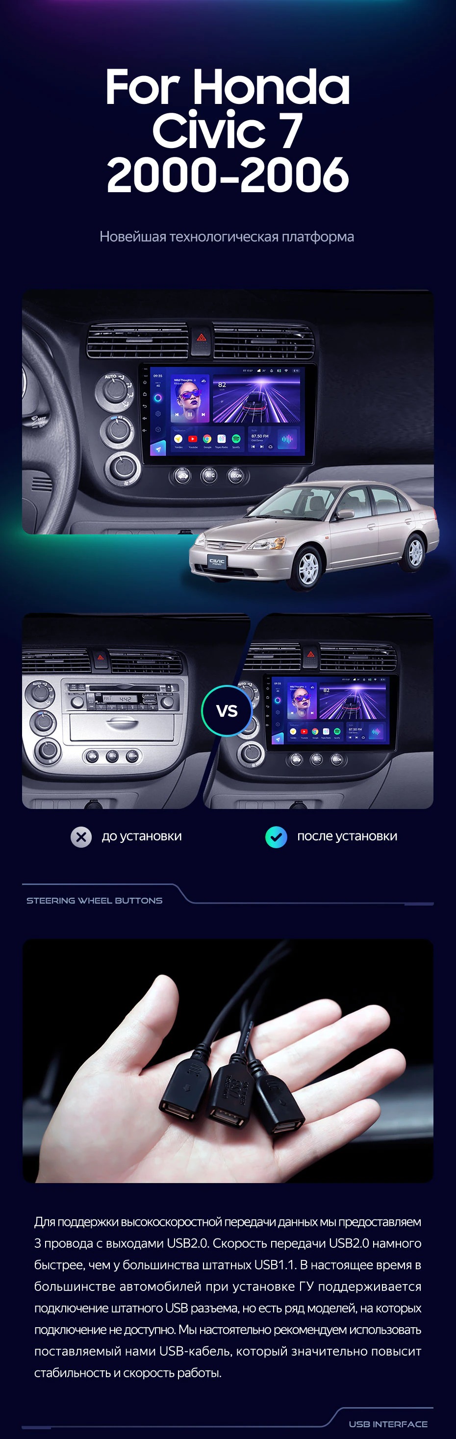 Штатная магнитола Teyes CC3L 4/32 Honda Civic 7 (2000-2006) F1 - купить всего за 28 500 руб. в интернет-магазине в Калининграде Teyes.com.ru. ✓ Самый лучший выбор мультимедиа ✓ Лучшая замена штатному ГУ ✓ Тел. +7 (800) 775-31-74