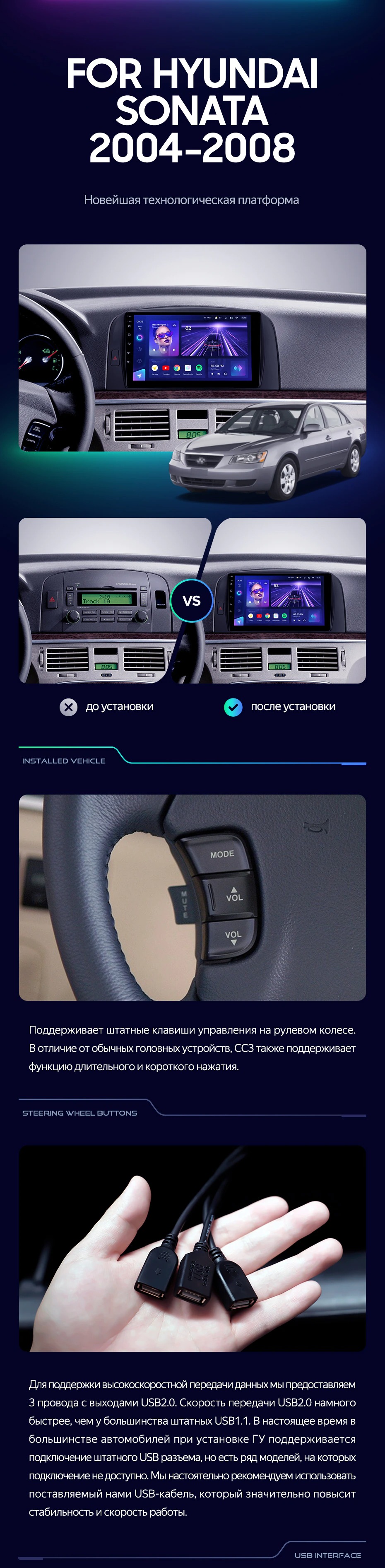 Штатная магнитола Teyes CC3L 4/32 Hyundai Sonata NF (2004-2008) - купить всего за 28 200 руб. в интернет-магазине в Калининграде Teyes.com.ru. ✓ Самый лучший выбор мультимедиа ✓ Лучшая замена штатному ГУ ✓ Тел. +7 (800) 775-31-74