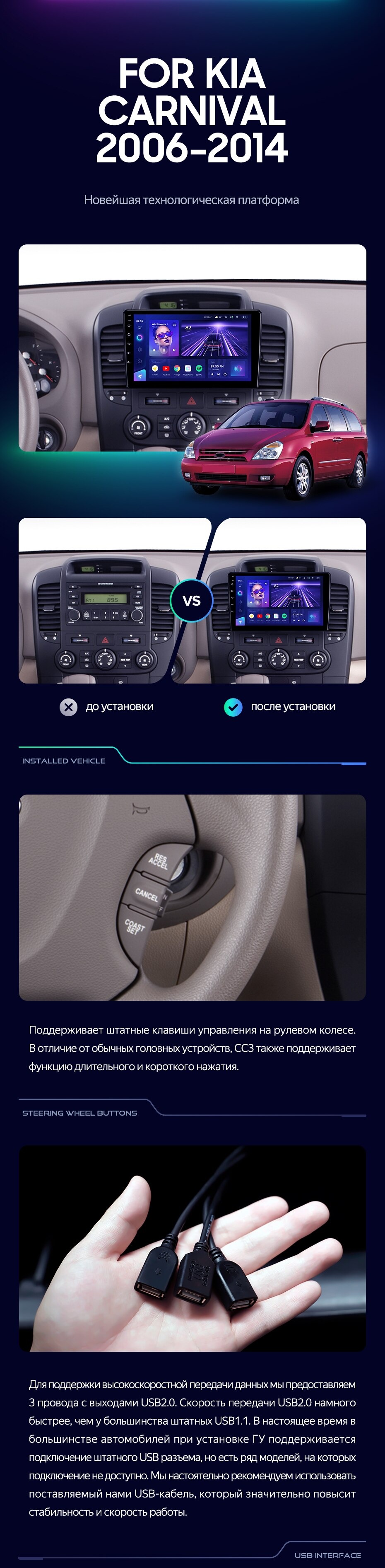 Штатная магнитола Teyes CC3L 4/32 Kia Carnival VQ (2006-2014) - купить всего за 29 000 руб. в интернет-магазине в Калининграде Teyes.com.ru. ✓ Самый лучший выбор мультимедиа ✓ Лучшая замена штатному ГУ ✓ Тел. +7 (800) 775-31-74