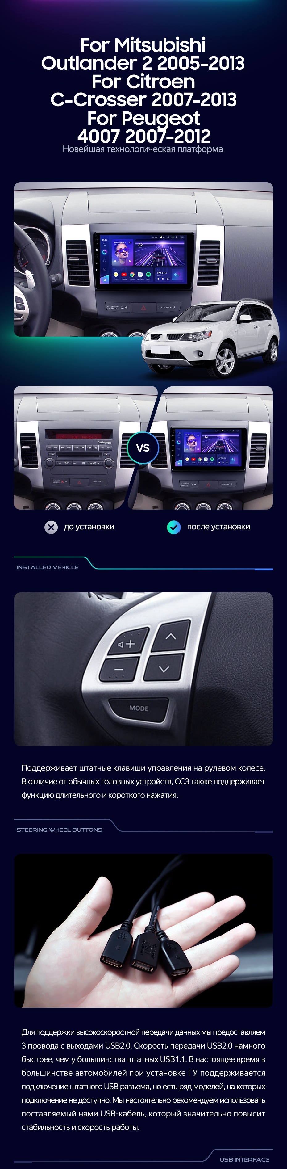 Штатная магнитола Teyes CC3L 4/32 Mitsubishi Outlander 2 (2005-2011) Тип-B - купить всего за 28 600 руб. в интернет-магазине в Калининграде Teyes.com.ru. ✓ Самый лучший выбор мультимедиа ✓ Лучшая замена штатному ГУ ✓ Тел. +7 (800) 775-31-74