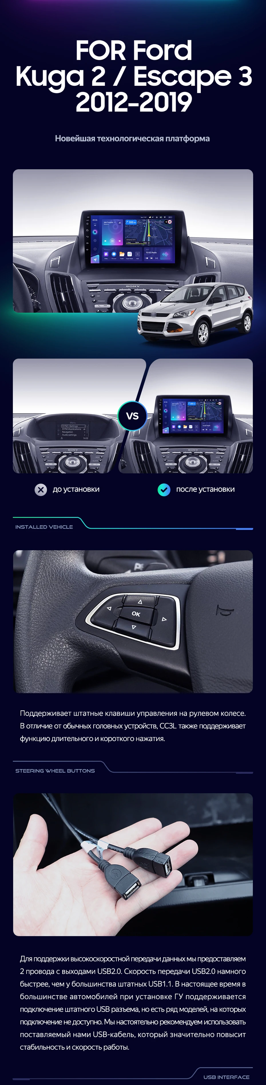 Штатная магнитола Teyes CC3L 4/64 Ford Escape 3 (2012-2019) Тип-A - купить всего за 31 500 руб. в интернет-магазине в Калининграде Teyes.com.ru. ✓ Самый лучший выбор мультимедиа ✓ Лучшая замена штатному ГУ ✓ Тел. +7 (800) 775-31-74