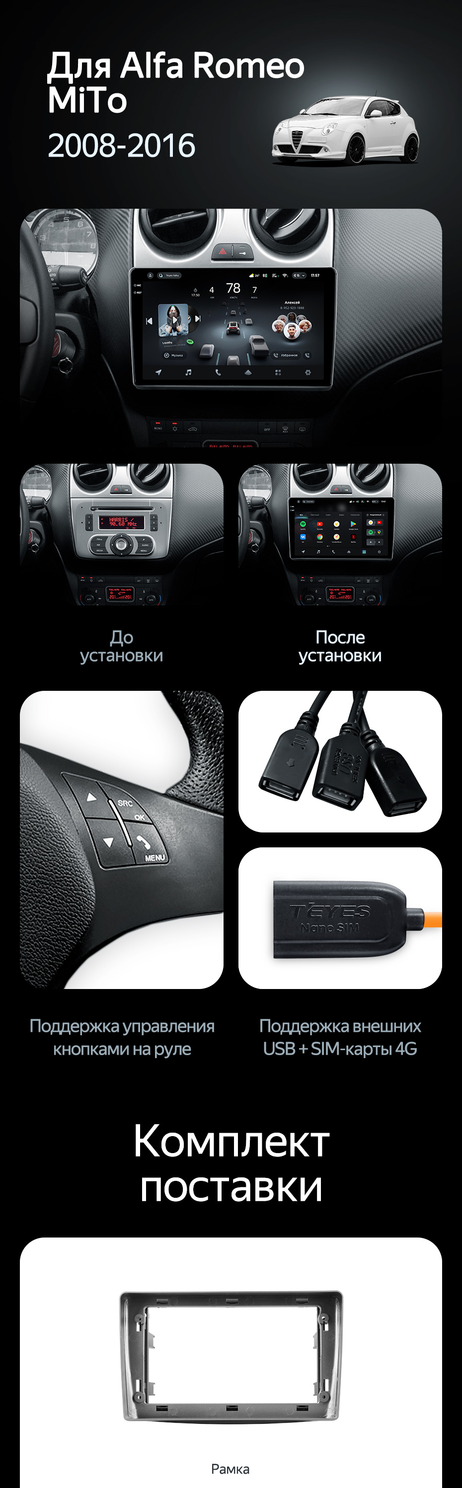 Штатная магнитола Teyes CC4 6/64 Alfa Romeo MiTo 955 (2008-2016) - купить всего за 46 500 руб. в интернет-магазине в Калининграде Teyes.com.ru. ✓ Самый лучший выбор мультимедиа ✓ Лучшая замена штатному ГУ ✓ Тел. +7 (800) 775-31-74
