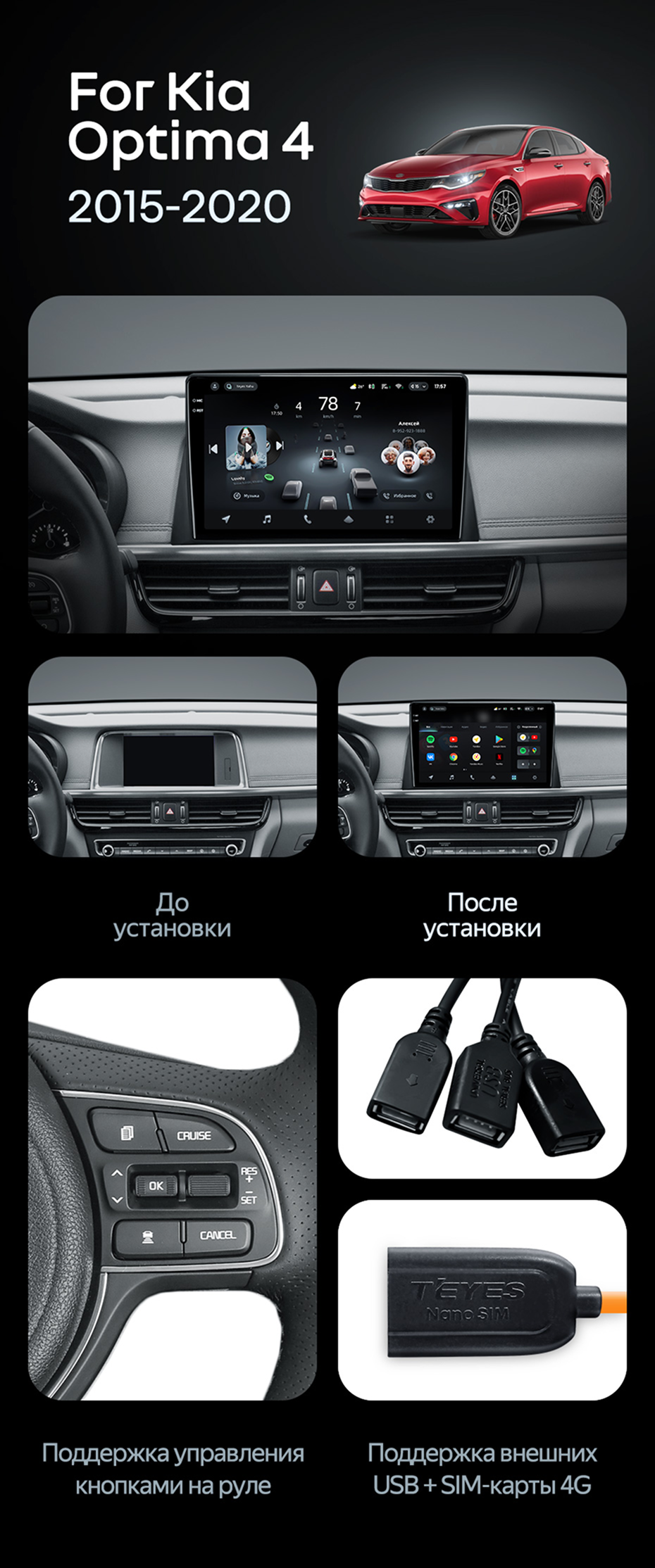 Штатная магнитола Teyes CC4 6/64 Kia Optima 4 JF (2015-2020) Тип-B - купить всего за 49 040 руб. в интернет-магазине в Калининграде Teyes.com.ru. ✓ Самый лучший выбор мультимедиа ✓ Лучшая замена штатному ГУ ✓ Тел. +7 (800) 775-31-74