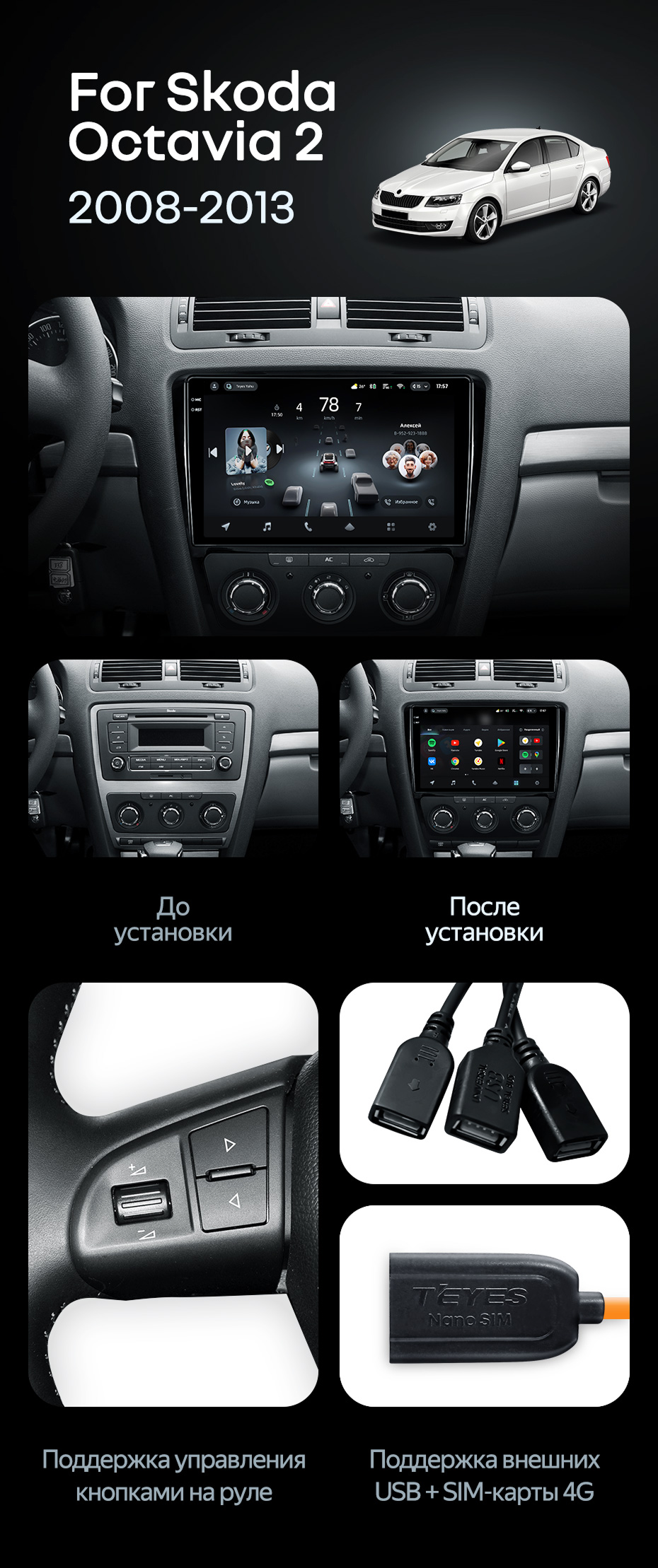 Штатная магнитола Teyes CC4 6/64 Skoda Octavia 2 A5 (2008-2013) - купить всего за 48 070 руб. в интернет-магазине в Калининграде Teyes.com.ru. ✓ Самый лучший выбор мультимедиа ✓ Лучшая замена штатному ГУ ✓ Тел. +7 (800) 775-31-74