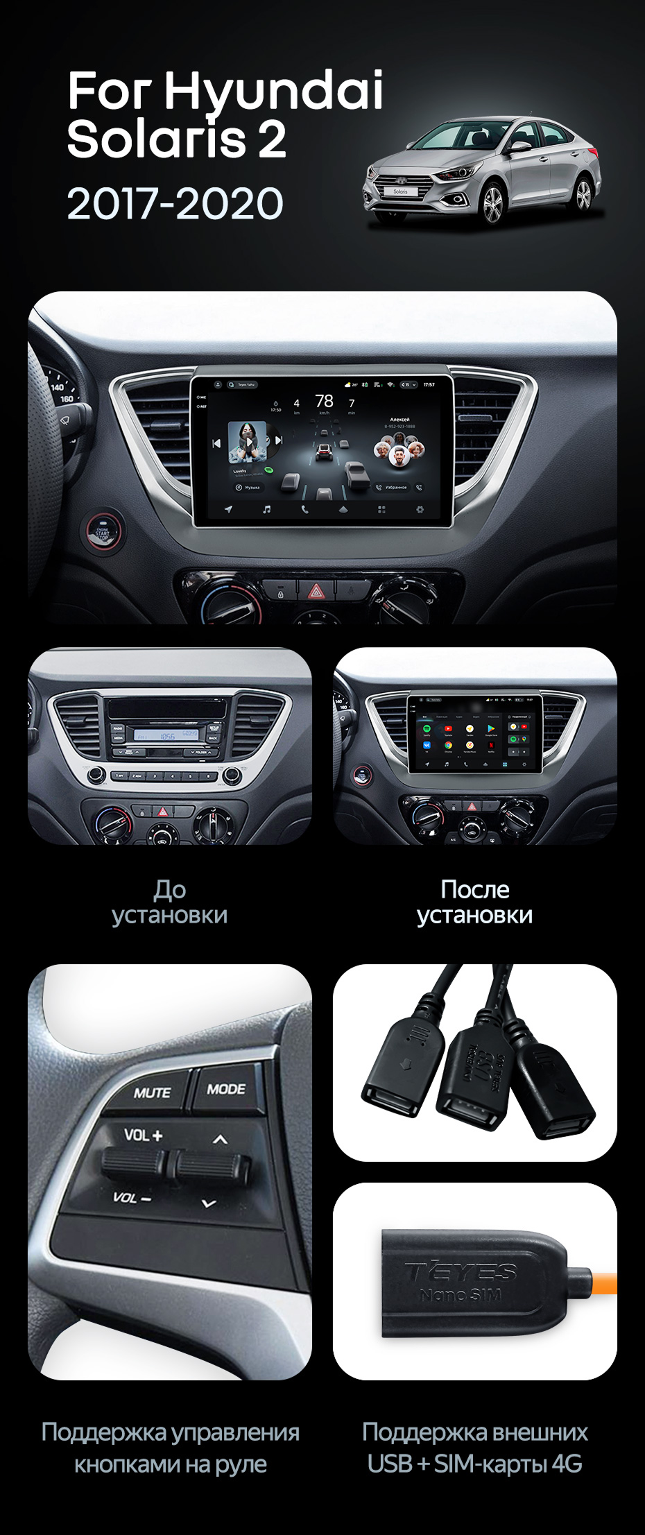 Штатная магнитола Teyes CC4 Pro 12/256 Hyundai Solaris 2 (2017-2020) F1 Тип-A - купить всего за 67 980 руб. в интернет-магазине в Калининграде Teyes.com.ru. ✓ Самый лучший выбор мультимедиа ✓ Лучшая замена штатному ГУ ✓ Тел. +7 (800) 775-31-74