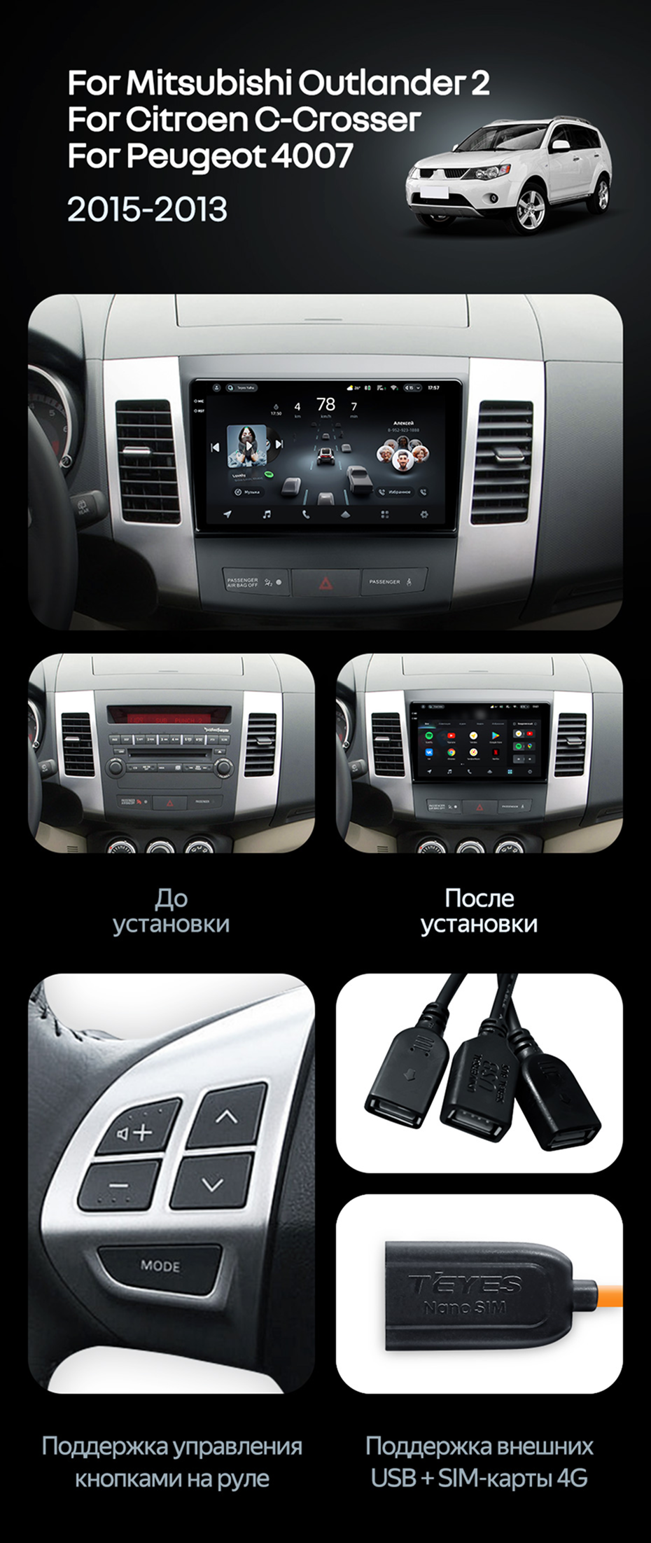 Штатная магнитола Teyes CC4 Pro 12/256 Peugeot 4007 (2007-2012) Тип-A - купить всего за 68 070 руб. в интернет-магазине в Калининграде Teyes.com.ru. ✓ Самый лучший выбор мультимедиа ✓ Лучшая замена штатному ГУ ✓ Тел. +7 (800) 775-31-74