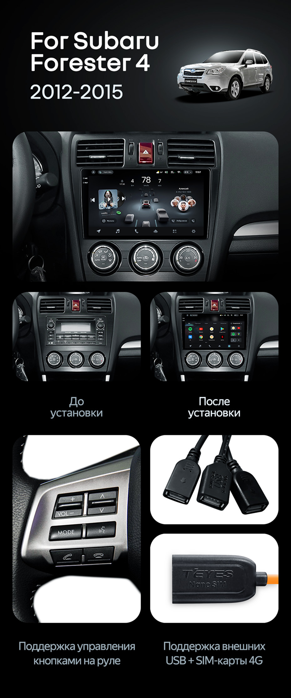 Штатная магнитола Teyes CC4 Pro 12/256 Subaru Forester 4 SJ (2012-2015) Тип-A - купить всего за 68 100 руб. в интернет-магазине в Калининграде Teyes.com.ru. ✓ Самый лучший выбор мультимедиа ✓ Лучшая замена штатному ГУ ✓ Тел. +7 (800) 775-31-74