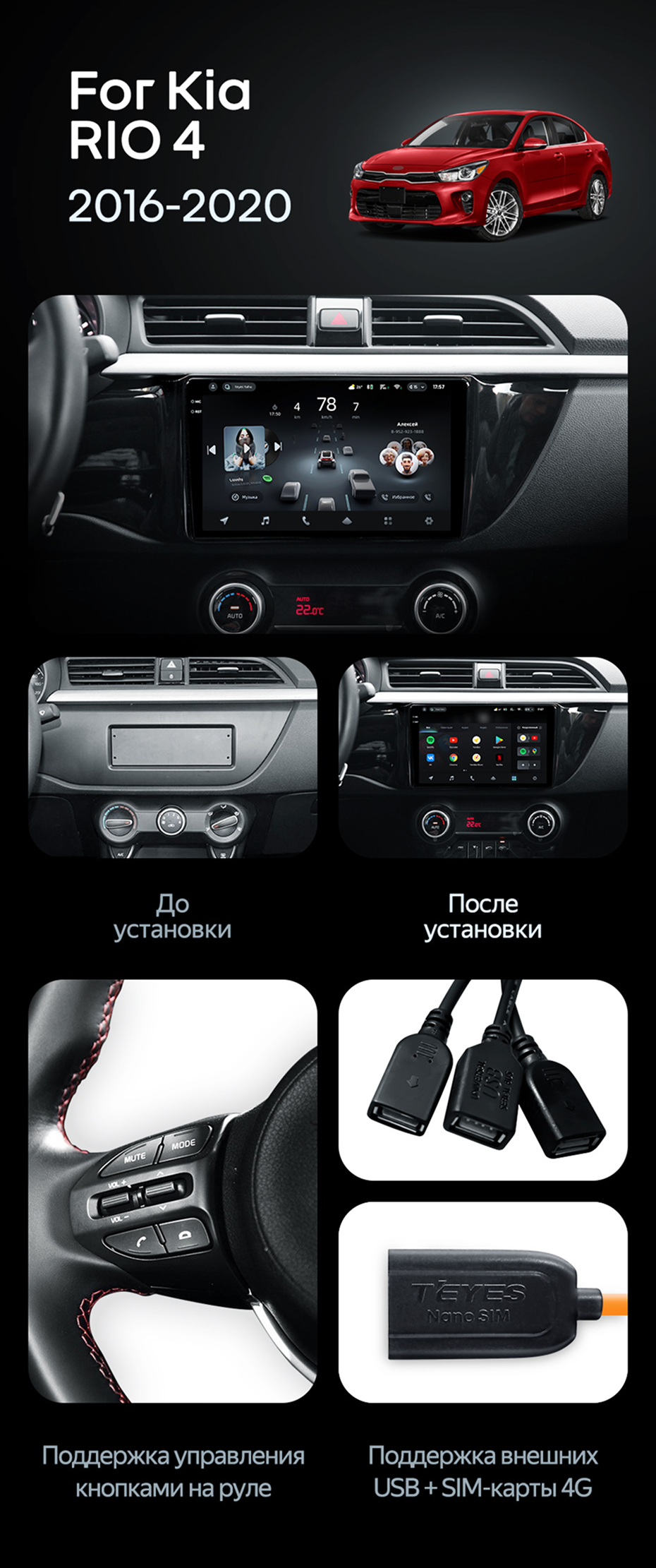 Штатная магнитола Teyes CC4 Pro 8/128 Kia Rio 4 (2016-2020) Тип-A - купить всего за 58 060 руб. в интернет-магазине в Калининграде Teyes.com.ru. ✓ Самый лучший выбор мультимедиа ✓ Лучшая замена штатному ГУ ✓ Тел. +7 (800) 775-31-74