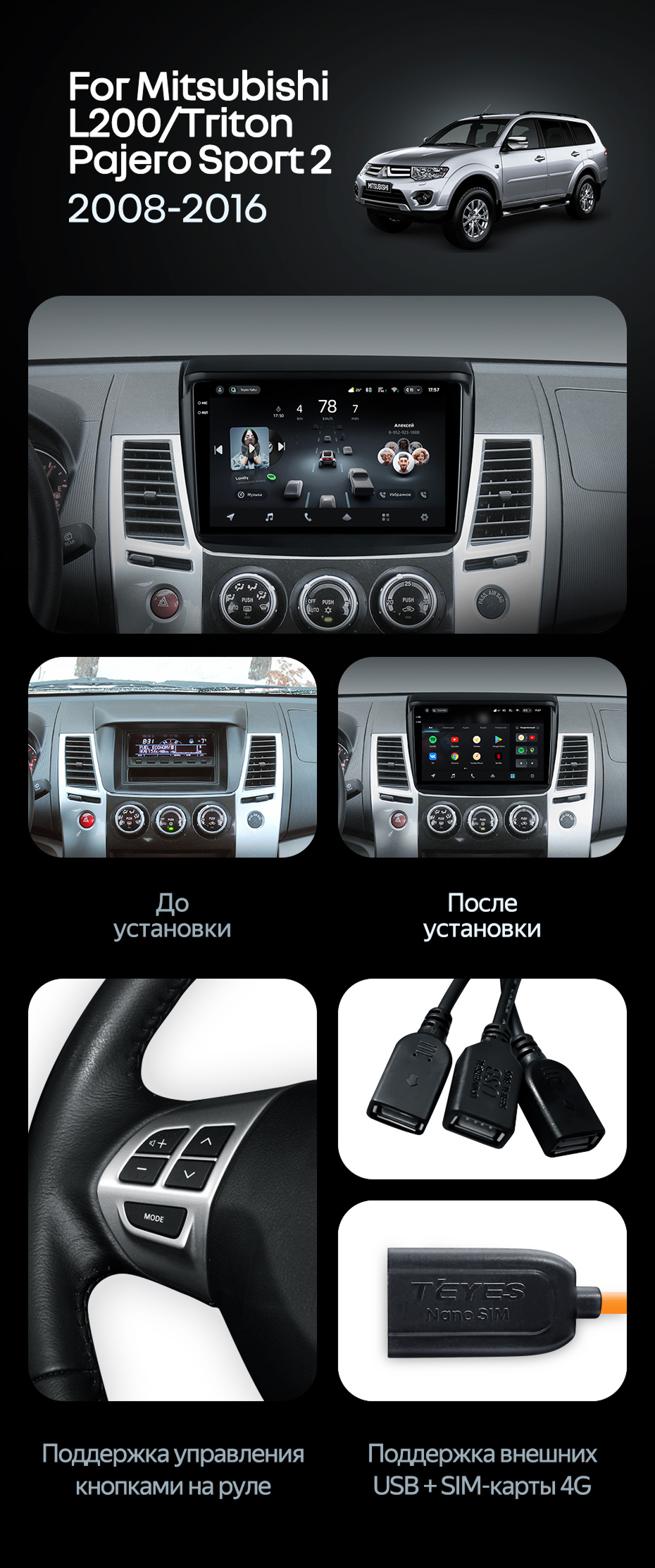 Штатная магнитола Teyes CC4 Pro 8/128 Mitsubishi L200 (2008-2016) - купить всего за 58 400 руб. в интернет-магазине в Калининграде Teyes.com.ru. ✓ Самый лучший выбор мультимедиа ✓ Лучшая замена штатному ГУ ✓ Тел. +7 (800) 775-31-74