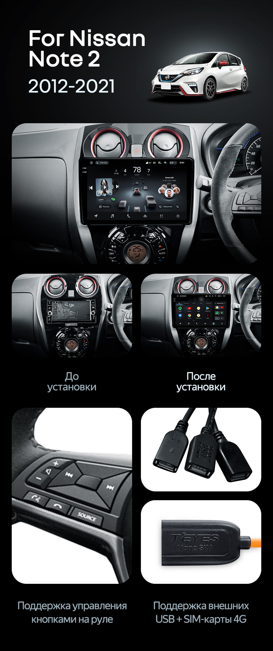Штатная магнитола Teyes CC4 Pro 8/128 Nissan Note 2 E12 (2012-2021) - купить всего за 58 270 руб. в интернет-магазине в Калининграде Teyes.com.ru. ✓ Самый лучший выбор мультимедиа ✓ Лучшая замена штатному ГУ ✓ Тел. +7 (800) 775-31-74