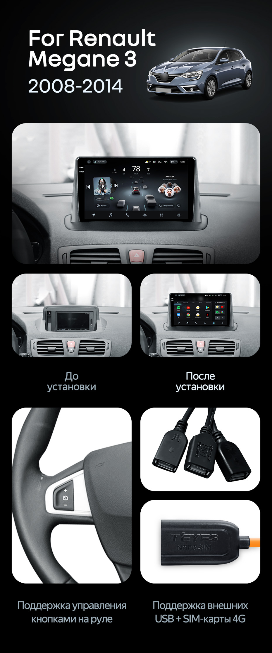 Штатная магнитола Teyes CC4 Pro 8/128 Renault Megane 3 (2008-2014) - купить всего за 60 050 руб. в интернет-магазине в Калининграде Teyes.com.ru. ✓ Самый лучший выбор мультимедиа ✓ Лучшая замена штатному ГУ ✓ Тел. +7 (800) 775-31-74