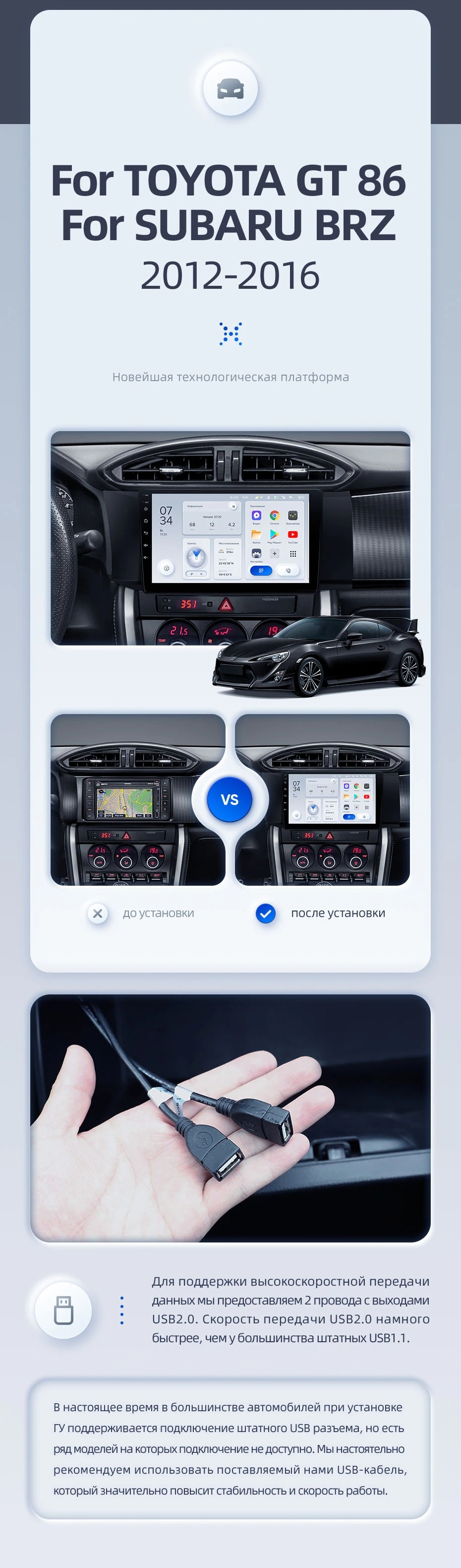 | USB | 3×USB 2.0 + USB 3.0 | Доп. аксессуары | Передняя/задняя AHD-камера, DVR-регистратор, TPMS, парковочный OBD, Type-C → HDMI |