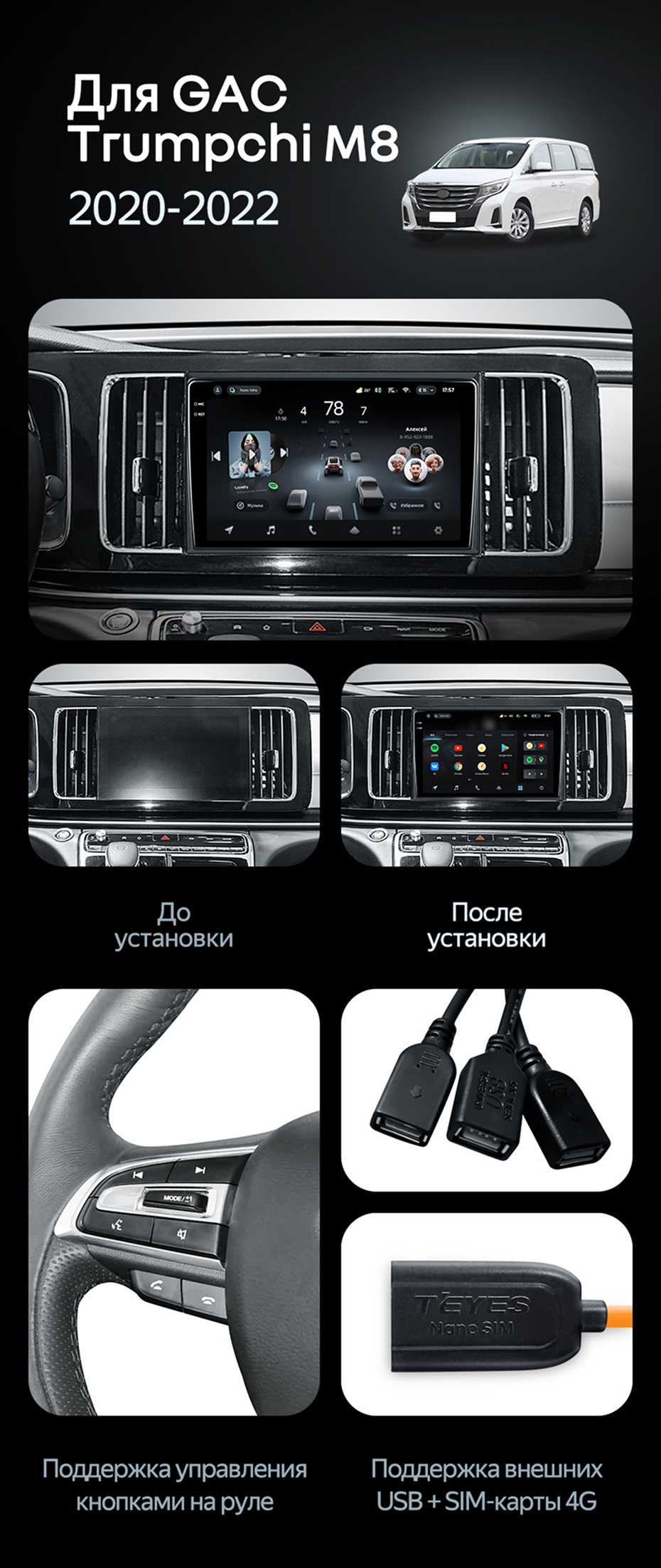 Переходная рамка GAC Trumpchi M8 (2020-2022) (10") - купить всего за 5 400 руб. в интернет-магазине в Калининграде Teyes.com.ru. ✓ Самый лучший выбор мультимедиа ✓ Лучшая замена штатному ГУ ✓ Тел. +7 (800) 775-31-74