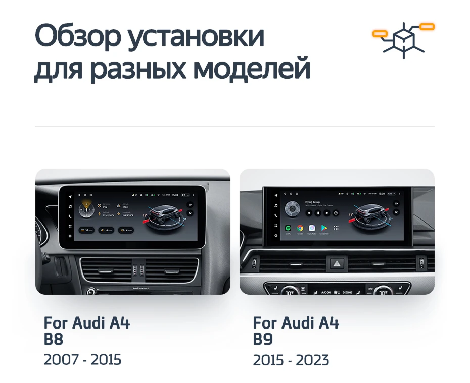 Готовый установочный комплект для магнитолы Audi A4 4 B8 (2007-2015) Тип-B 12,3 дюйма в штатное место, включает переходную рамку и проводку.