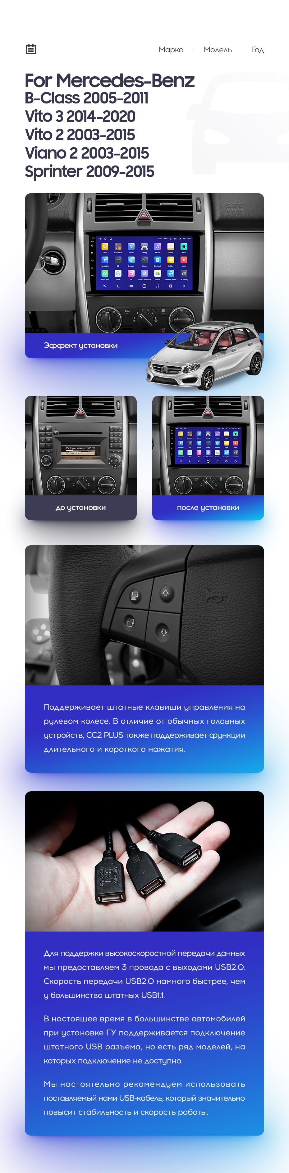 Полный комплект установки магнитолы Teyes с рамкой и проводкой можно выбрать в каталоге штатных магнитол Mercedes Benz B-Class T245 (2005-2011).