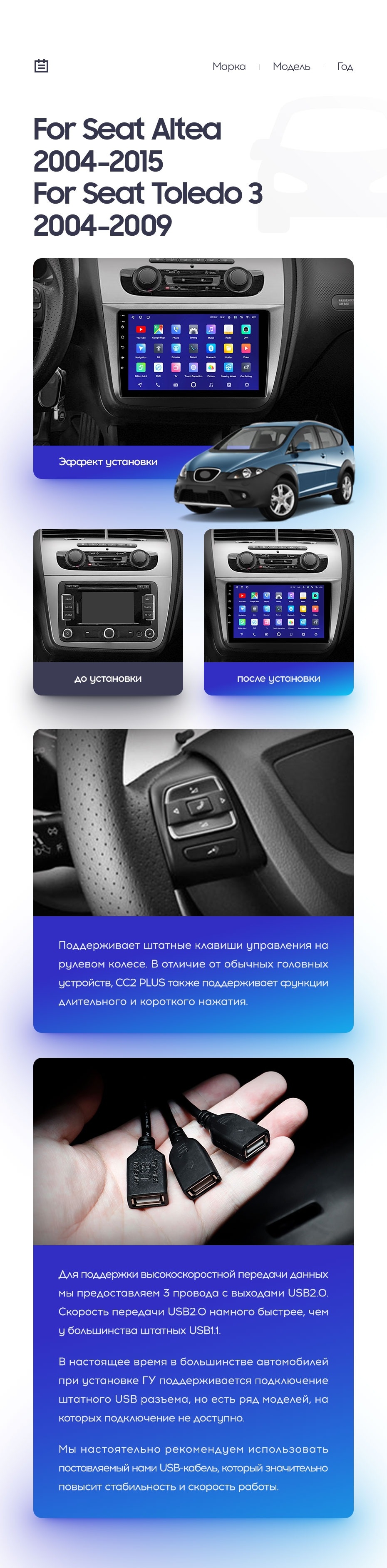 Полный комплект установки магнитолы Teyes с рамкой и проводкой можно выбрать в каталоге штатных магнитол Seat Altea 5P (2004-2015).